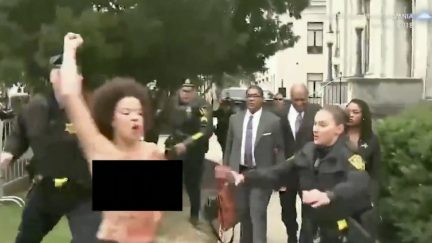 Topless Protester Charges at Bill Cosby as Sexual Assault Retrial Begins (VIDEO)