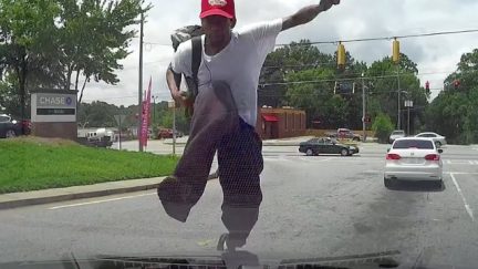 Man Runs Up Woman's Car, Destroys Windshield, Disappears (WATCH)
