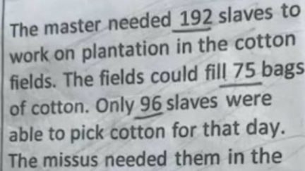 Parents Outraged After Slavery-Themed Math Problem Given to Students
