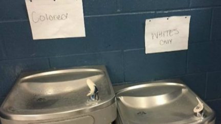 'Whites Only' and 'Colored' Signs Taped over School Water Fountains