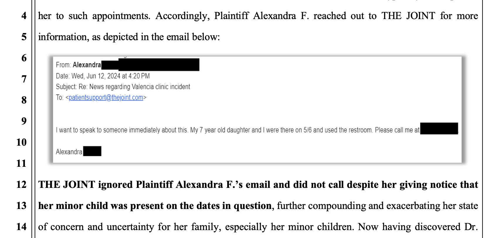 According to the complaint, defendants "were put on notice as early as 2023, if not earlier, that Defendant Dr. Vanderhyde behaved inappropriately during chiropractic treatment of THE JOINT and his patients" and that he "sexually harassed female employees at THE JOINT and engaged in stalking of their social media profiles," but yet he continued treating patients without "proper supervision," allegedly committed sexual battery offenses, and in one instance allegedly harassed a patient by comparing her body to his wife's.
