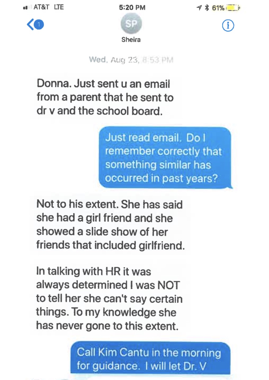 So far, the school district has released a series of text messages showing one parent's complaint. See here and here.